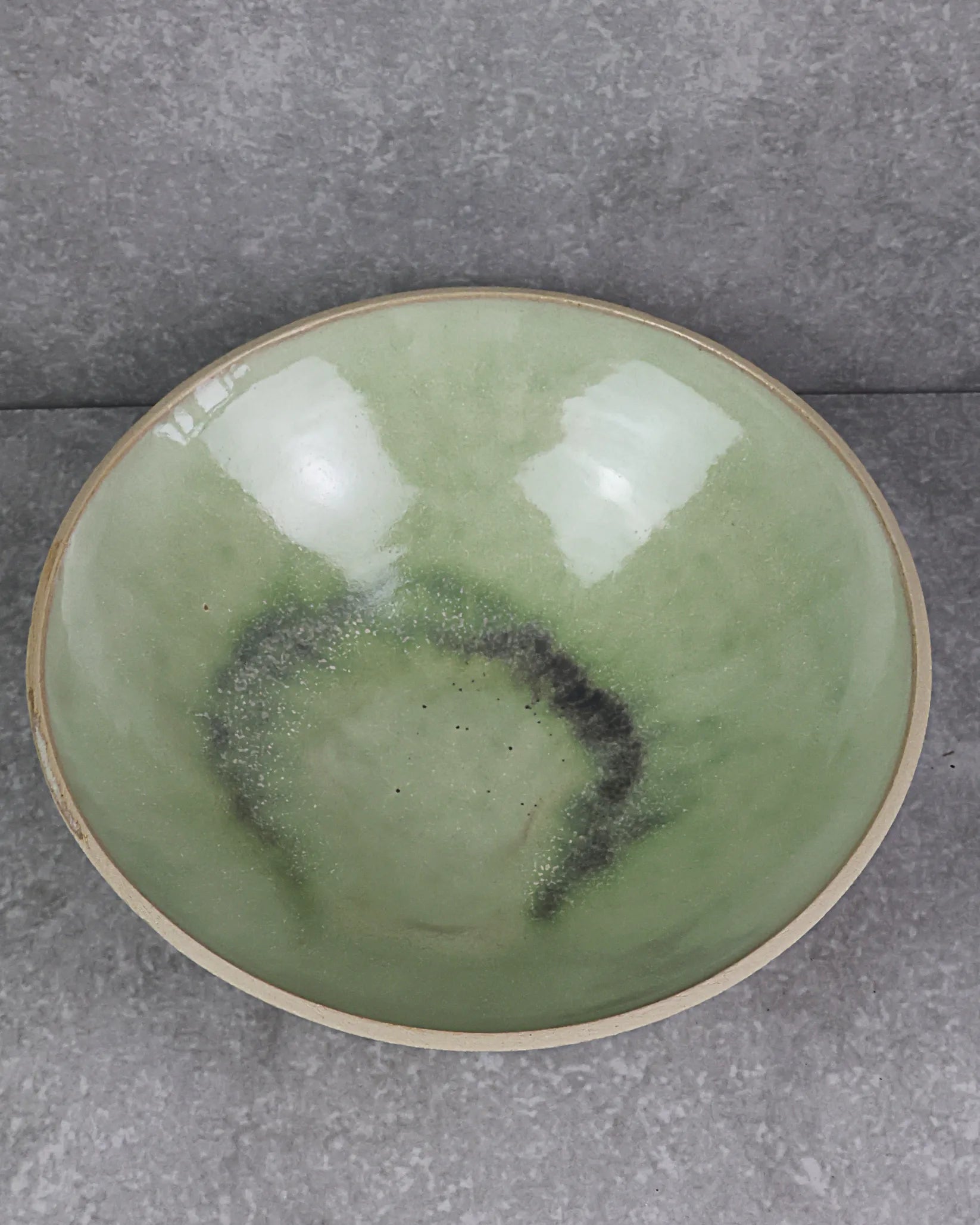 - Plat en céramique avec émail vert.