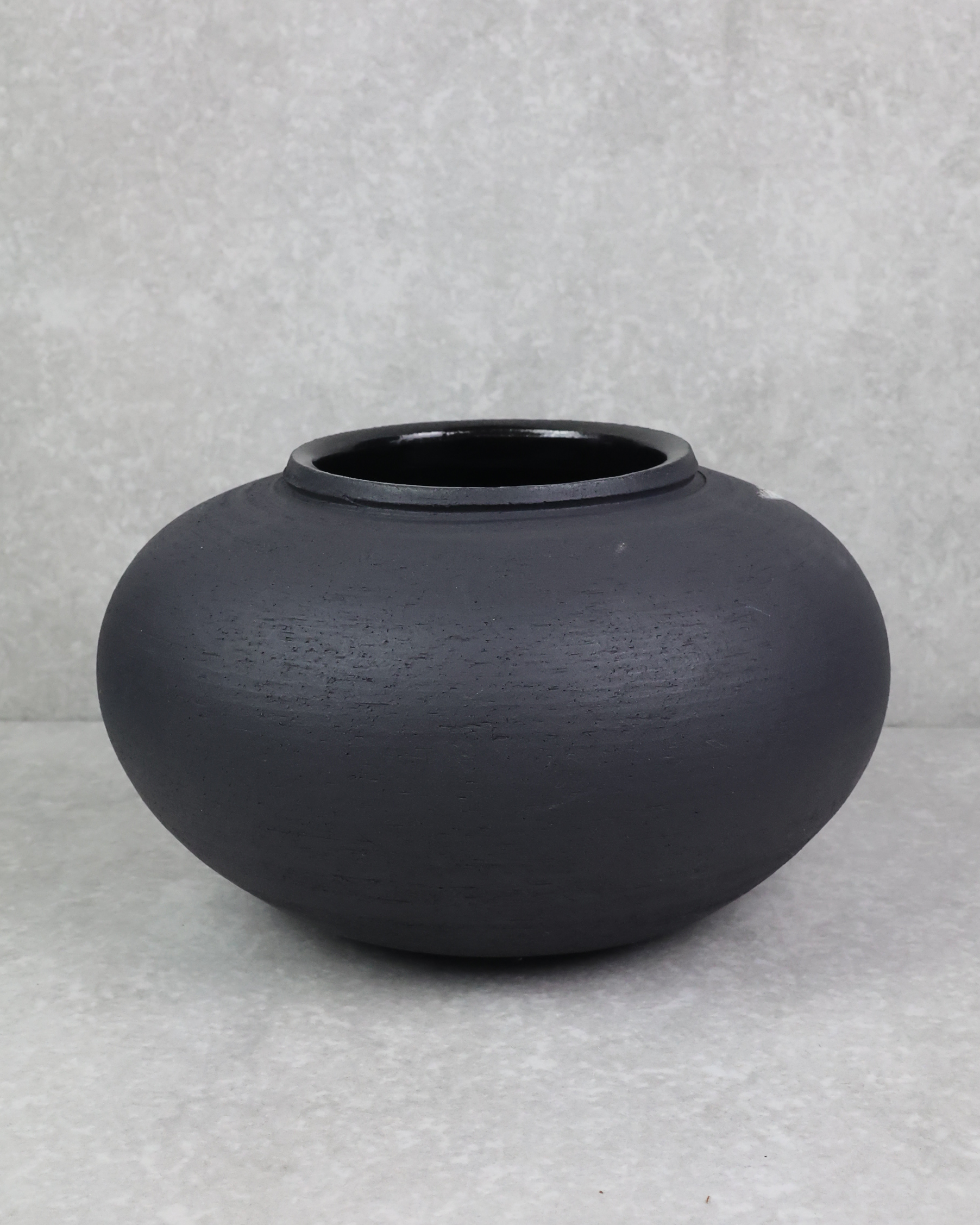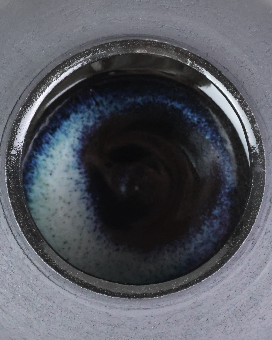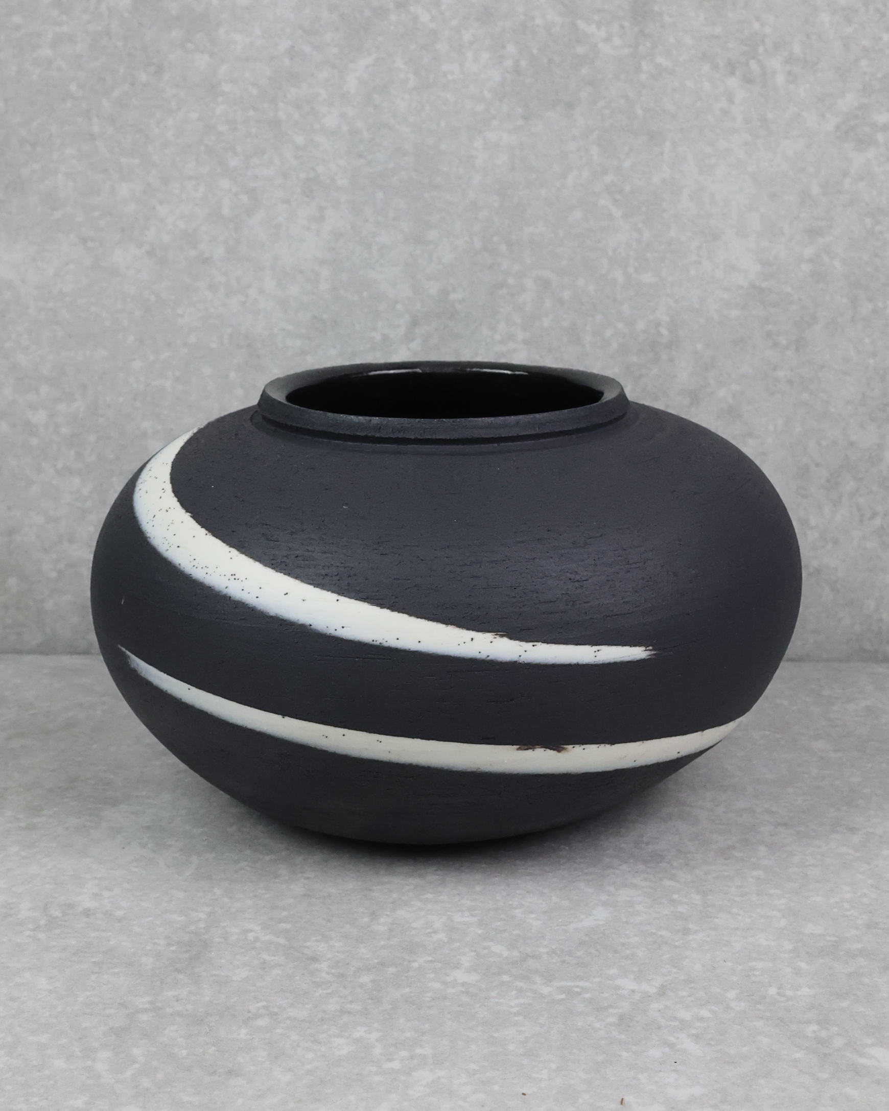 Pièce en céramique noire, tournée à la main avec traits de porcelaine.