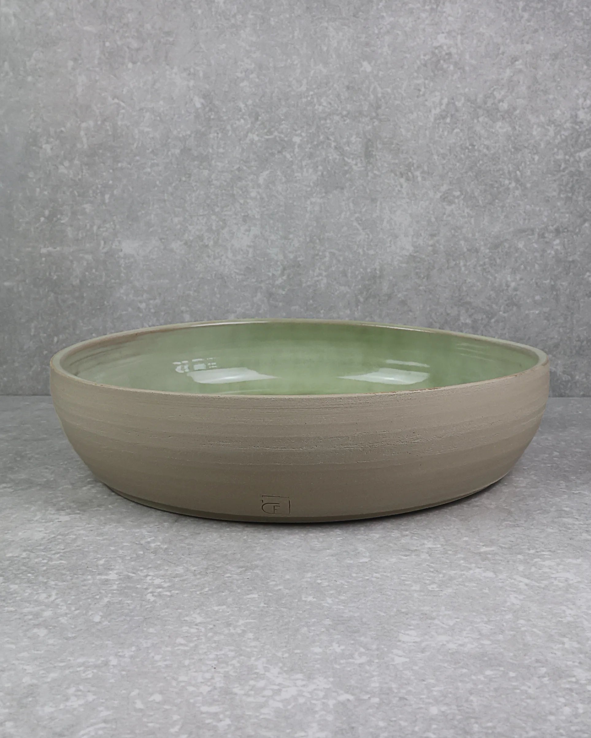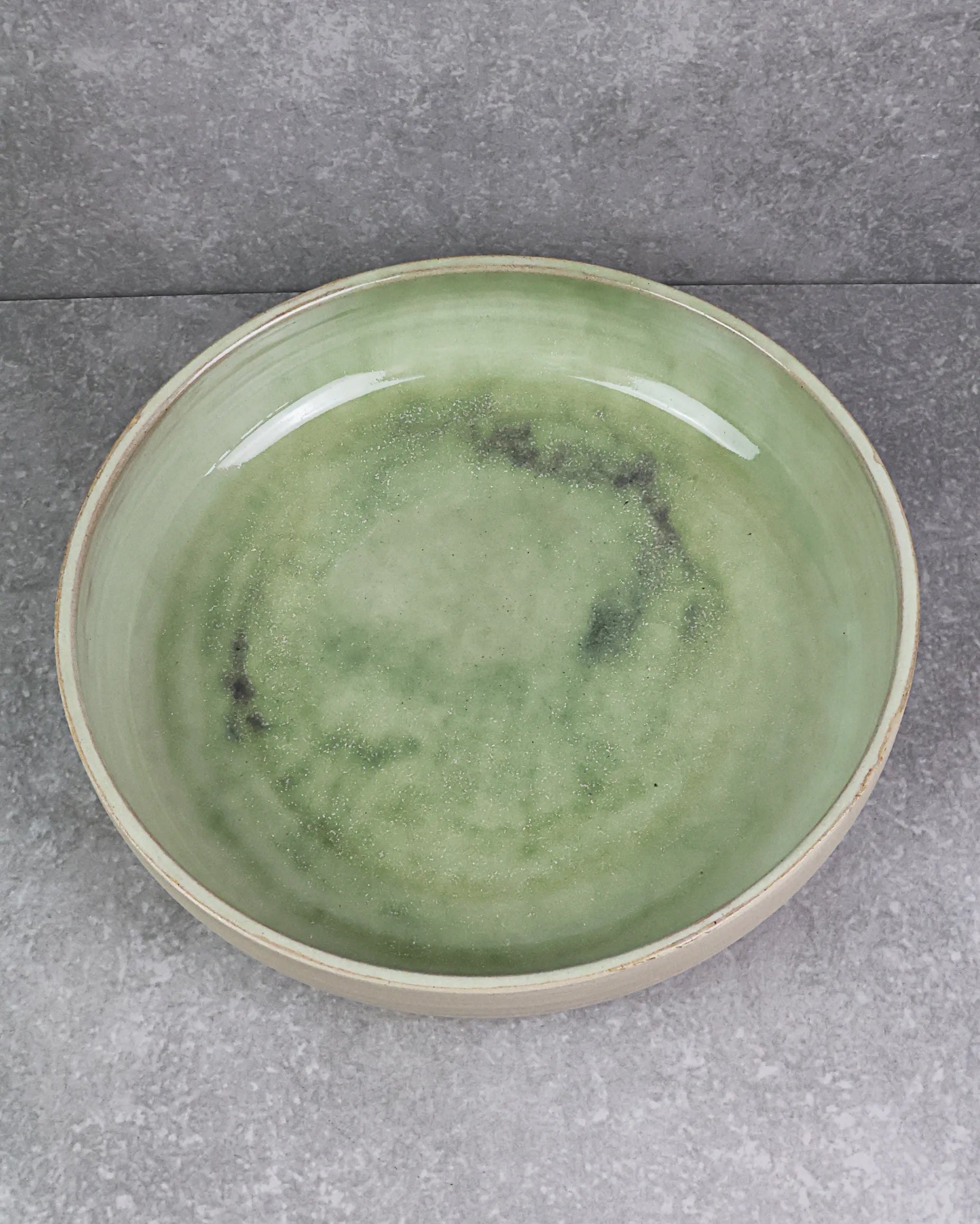 Pièce maîtresse pour votre intérieur. Tourné à la main par notre céramiste, ce magnifique plat se distingue par ses émaux cristallisés verts.