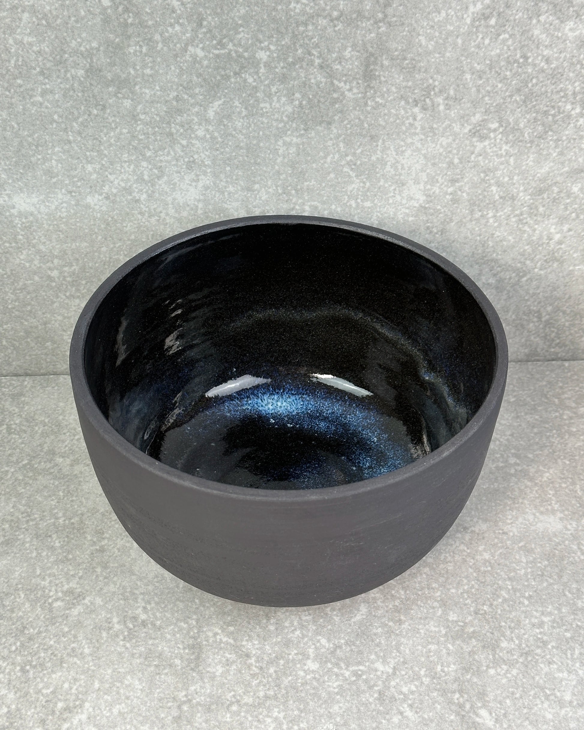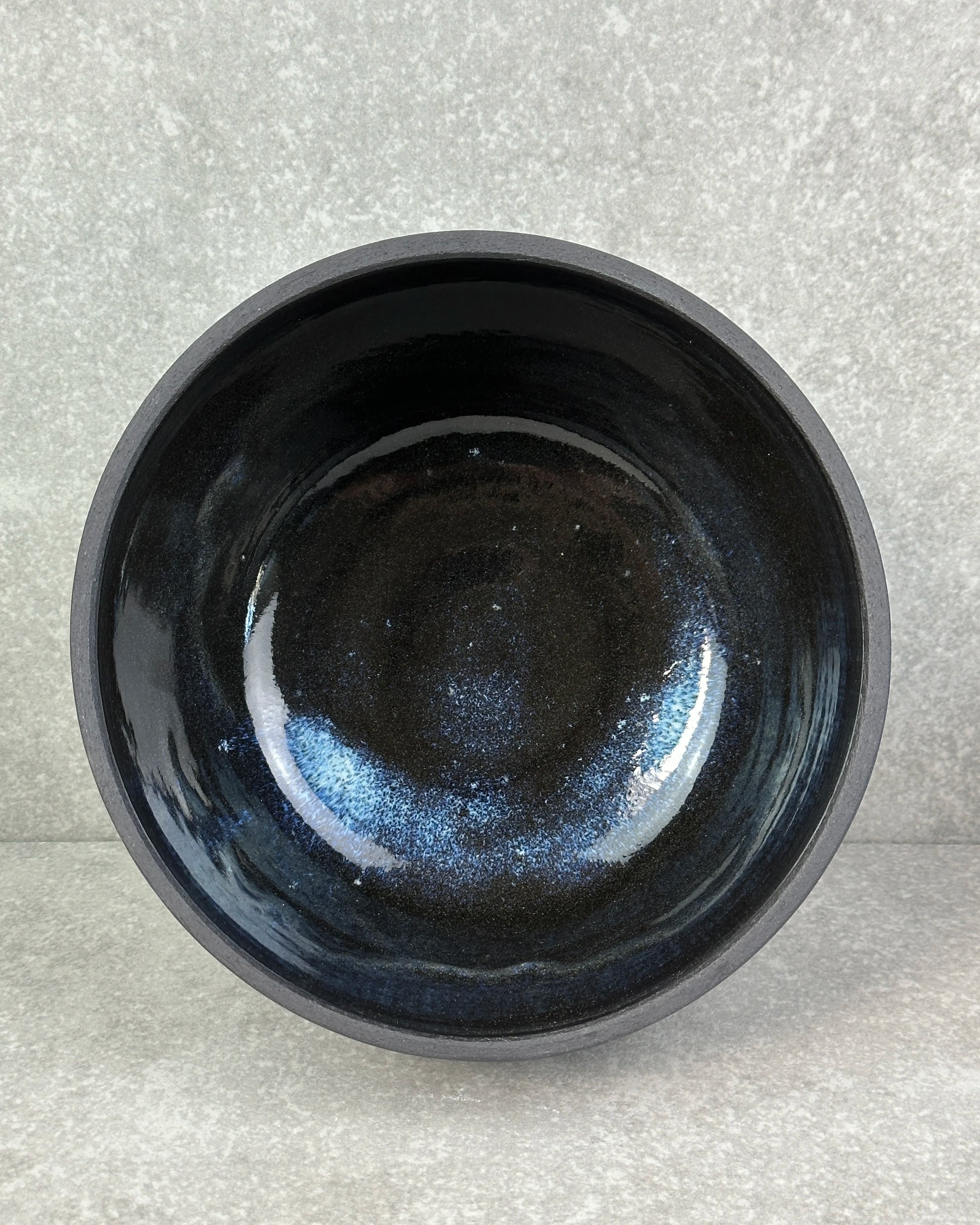 Pièce maîtresse pour votre intérieur. Tourné à la main par notre céramiste, ce magnifique plat se distingue par ses émaux cristallisés aux teintes bleues et part sa terre noire intense.