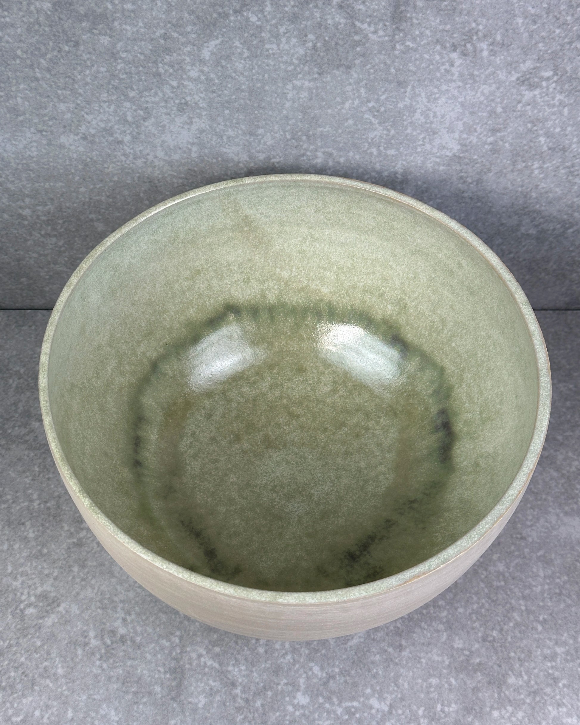 Pièce maîtresse pour votre intérieur. Tourné à la main par notre céramiste, ce magnifique plat se distingue par ses émaux cristallisés verts.